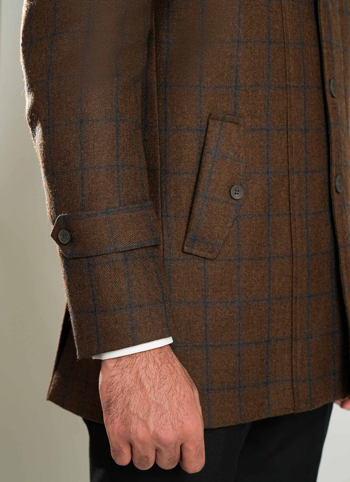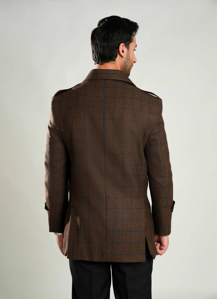 Double Jacket - Worsted Tweed Brown Windowpane Checks