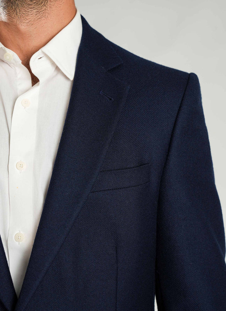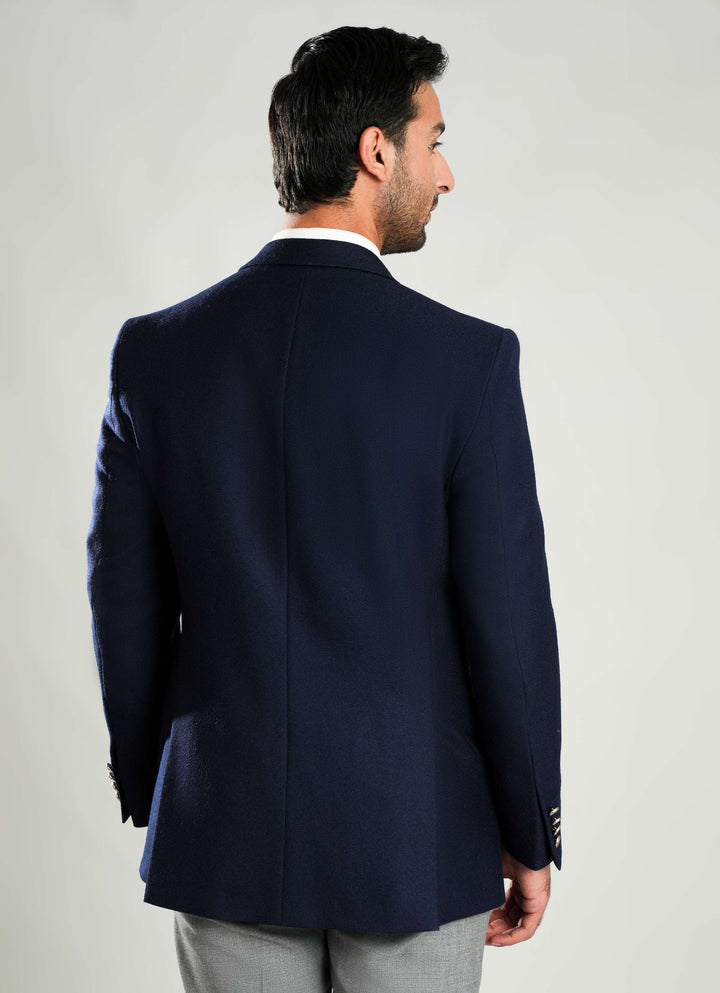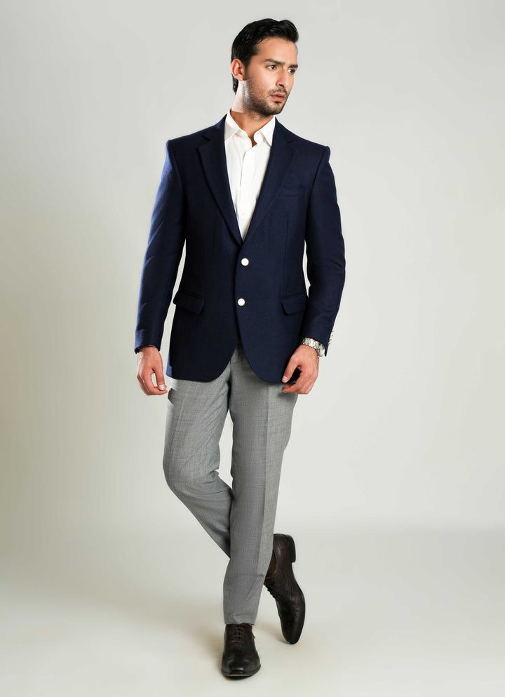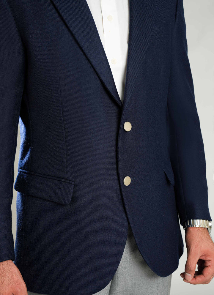 Lawrencepur bluish grey herringbone textured worsted tweed blazer for men.