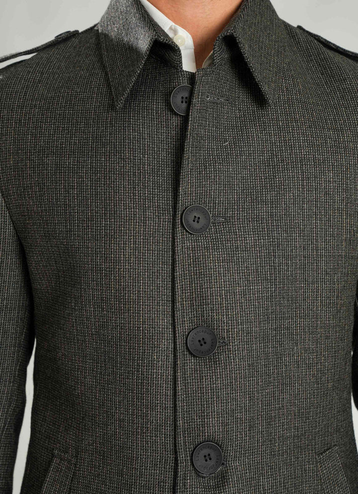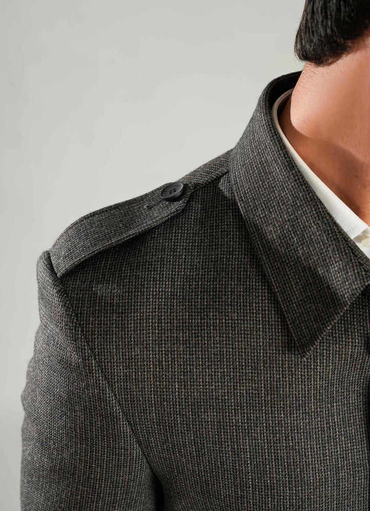 Dark Grey - Checkered Wool-Rich Worsted Tweed Long Coat